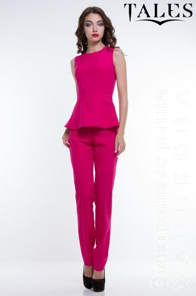 Размеры: 42 - 48 / S - XL Блузка без рукавов отрезная по линии талии и фиксируется на поясе. Баска слегка расклешенная. На полочке и спинке выточки. Круглый неглубокий вырез горловины. В среднем шве спинки металлическая змейка. Длина изделия по боковому шву 36 см. Классические брюки с функциональными карманами с отрезным бочком. Карман в рамочку по задним половинкам брюк. Рост модели на фото 174 см. Для ухода за изделием рекомендована ручная стирка или сухая чистка.
