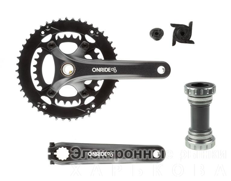 Короткі характеристики: Каретка ONRIDE Duet Pro 1110, стандарт Hollowtech, вал 24 мм, проміжний підшипник, сумісна з 11/10 швидкостей, алюміній + сталь, чорний колір, включена в комплект шатунів.