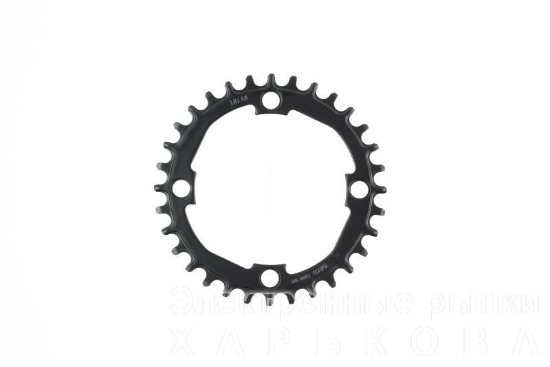 Зірка виготовлена зі сталі високої міцності. На відміну від алюмінієвих аналогів, сталь довше зберігає форму зубців та витримує сотні годин інтенсивного педалювання без суттєвого зносу. Чорне покриття захищає від корозії і додає стильного вигляду. Для велосипедистів, які катають у будь-яку погоду, включно з дощем та багнюкою, це особливо важливо.