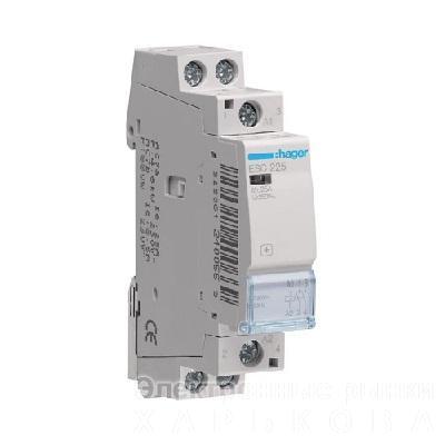 Контактор ESC225 25А 2НО 230В Hager — это модульный электромагнитный контактор (пускатель) для установки на DIN-рейку в распределительных щитах. Предназначен для дистанционного управления и коммутации силовых цепей в системах освещения, отопления, вентиляции, насосов, бытовой автоматики и других нагрузок переменного тока.