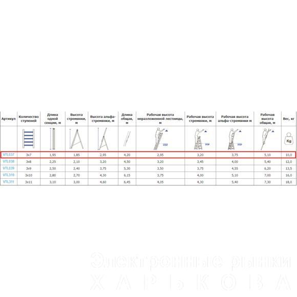 Алюминиевая трехсекционная лестница VIRASTAR TRIOMAX 3х7 ступеней (VTL037) – официальный дилер VIRASTAR в Украине. Быстрая доставка за 1-2 дня, гарантия, выгодные цены. Заказывайте на STORGOM.UA!