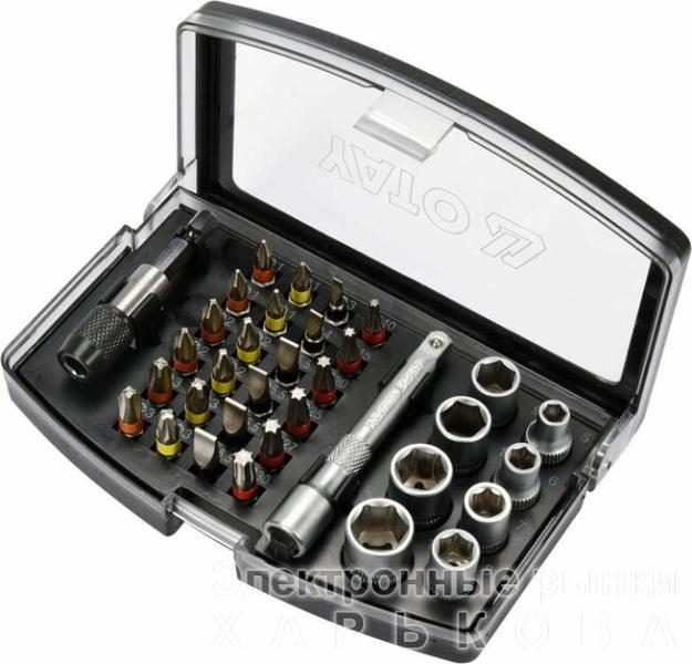 Технические характеристики YATO (YT-04623) Конструктивные и функциональные особенности Тип шлица звездочка (TorX) плоский (SL) крестообразный (PH) крестообразный (PZ) Тип хвостовика шестигранный (HEX) Назначение для гипсокартона для строительных саморезов Особенности в кейсе Материал сталь S2 Дополнительная информация Размер/номер TORX PZ2 PH2 PZ3 PH1 PH3 PZ1 SL4 SL5.5 SL3 Вид односторонние Подходит для для шуруповертов Класс бытовые Количество предметов в наборе 34 шт Посадочный квадрат 1/4" Упаковка пластиковый кейс Комплектация набор Вес 0.475 кг Длина 25 мм Страна происхождения Польша Комплектация - Головки торцевые 1/4": 5, 6, 7, 8, 9, 10, 11, 12 мм (25 мм); - плоские отверточные насадки SL 1/4": 3, 4, 2 шт х 5.5, 2 шт х 6.5 мм (25 мм); - крестовые отверточные насадки PH 1/4": 2 шт х PH1, 2 шт х PH2, 2 шт х PH3 (25 мм); - крестовые отверточные насадки PZ 1/4": 2 шт х PZ1, 2 шт х PZ2, 2 шт х PZ3 (25 мм); - звездные отверточные насадки TORX 1/4": T10, T15, T20, T25, T27, T30 (25 мм); - пластиковый футляр Производитель оставляет за собой право вносить изменения в комплектацию или характеристики модели без уведомления продавца.