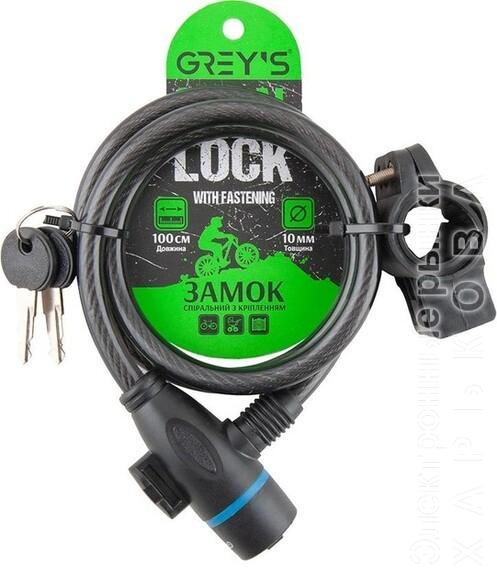 Велозамок спиральный Grey's 10х1000 мм (GR51010) - Велозамки на рынке Барабашова