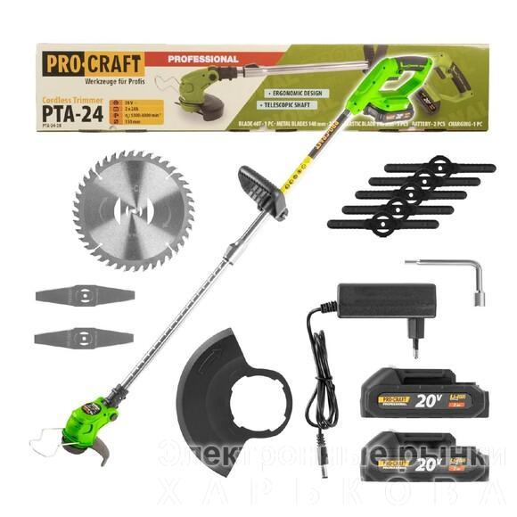 Технічні характеристики PROCRAFT PTA24 Характеристики двигуна і пристрою Тип двигуна щітковий Живлення акумуляторні Характеристики акумулятора Напруга акумулятора 21 В Кількість акумуляторів 2 Ємність аккумулятору 1.5 Аг Тип акумулятора Li-Ion (літій-іонні) Конструктивні та функціональні особливості Керування ручні Форма рукояті D-подібна Конструкція штанги телескопічна штанга Додаткова інформація Вид тримери Максимальна товщина волосіні 2.4 мм Клас побутові Гарантія 12 місяців Країна походження Китай Комплектація - Акумуляторний тример; - упаковка; - інструкція з експлуатації; - гарантійний талон Виробник залишає за собою право вносити зміни в комплектацію або характеристики моделі без повідомлення продавця.