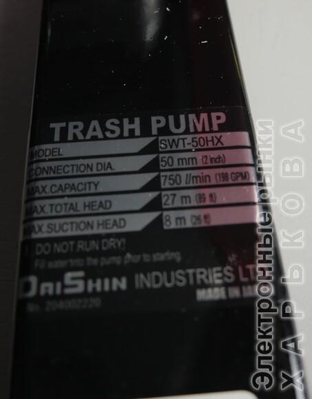 Технические характеристики Daishin SWT - 50HX Характеристики двигателя и устройства Тип топлива бензин Мощность, л.с. 4.6 л.с. Объем масляного картера 0.6 л Модель двигателя Honda GX160 Тип двигателя 4-тактный Обороты двигателя Обороты двигателя Чем ниже обороты двигателя, тем выше КПД, а так же увеличивается его ресурс и снижается уровень шума. 3600 об/мин Производитель двигателя Honda Конструктивные и функциональные особенности Назначение для бурения скважин для откачки сточных вод для откачки канализации Дополнительная информация Высота напора 28 м Диаметр патрубка 50 мм Производительность 700 л/мин 42 м.куб./час Высота всасывания 8 м Допустимый диаметр частиц 20 мм Тип перекачиваемой жидкости грязная вода Расход топлива 1.58 л/ч Гарантия 12 месяцев Габариты 550x390x450 мм Класс профессиональные Вес 30 кг Страна происхождения Япония Производитель оставляет за собой право вносить изменения в комплектацию или характеристики модели без уведомления продавца.