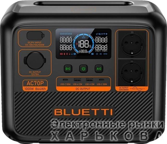 Портативна електростанція Bluetti AC70P - надійний та потужний енергетичний запас.Bluetti AC70P - це портативна електростанція, яка вражає своєю потужністю та інтелектуальними можливостями. З номінальною потужністю 1000 Вт та піковою 2000 Вт, ця електростанція стане невід'ємним компаньйоном для подорожей та використання в побуті.Висока ємність та довговічність:Електростанція має ємність 864 Вт*г, що забезпечує тривалий термін служби батареї.Батарея LiFePO4 дозволяє здійснювати понад 3000 циклів заряджання, забезпечуючи стабільну роботу станції протягом тривалого часу.Швидка зарядка та поглиблена енергія від сонця:Турбо-зарядка потужністю 850 Вт забезпечує зарядку до 80% всього за 45 хвилин.Здатність поглибленого використання сонячної енергії в 500 Вт дозволяє заряджати станцію за 2 години при наявності сонячного світла.Безперебійний та універсальний:Забезпечує 6 виходів для універсальної зарядки різних пристроїв. Інтелектуальне дистанційне керування через додаток Bluetti робить використання електростанції зручним та ефективним.Безпечний та надійний:Bluetti AC70P використовує найбезпечніші акумулятори LiFePO4, зберігаючи 80% ємності після більше ніж 3000 циклів заряджання. Інтелектуальна система керування акумулятором (BMS) гарантує безпеку та надійність використання.Багатофункціональність для зручного використання:Bluetti AC70P не лише надає стабільну потужність для електроприладів, але й розширює свої можливості, поєднуючись із додатковими батареями, такими як B80P, B230 або B300. Це робить модель ідеальним вибором для подорожей та відпочинку на свіжому повітрі.Характеристики: Ємність: 864 Wh. Тип: LiFePO4 (літій-залізо-фосфат). Життєві цикли: 3.000+ циклів до 80% початкової ємності. Термін зберігання: Перезарядка до 80% кожні 3-6 місяців. Система управління: MPPT-контролер, BMS тощо. Вихід Вихід AC: 2 x 230V/4.3A, 1000 Вт сумарна потужність. Тип інвертора: Чиста синусоїдальна хвиля. Пікова потужність: 2000 Вт. Порт USB-C: 2 x 100 Вт Max. Порт USB-A: 2 x USB-A: 5VDC/2,4A (Each Port). Вихід DC 12V: 1 x 12V/10A (автомобільна розетка, регульована.). Бездротова зарядна панель: 1 x 15 Вт Max. Вхід Вхід AC: 950 Вт Max. Вхід для сонячної панелі: 500 Вт Max,12V-28VDC, 10A. Автомобільний вхід: 12/24V від порту прикурювача. Максимальна споживана потужність: 950 Вт. Час перезаряджання Кабель для зарядки від мережі змінного струму: ~ 1.5-2 години (турбозарядка 950 Вт). Сонячна панель: ~ 2.2-2.7 години (Max 500 Вт) (З чудовим сонячним світлом, ідеальною орієнтацією та низькою температурою). Автомобільна розетка 12V/24V (100 Вт/200 Вт): ~9.1-9.6 годин / 4.8-5.3 годин. Загальні відомості Наскрізне заряджання: Так. Температура заряджання: 0°C - 40°C. Температура розряджання: -20°C - 40°C. Температура зберігання: -20°C - 40°C. Сертифікація: UL Standard, CEC, DOE, FCC, CA Prop 65. Комплектація: зарядна станція, зарядний AC кабель, автомобільний зарядний кабель, кабель для сонячної панелі, інструкція. Розмір: 314x209.5x255.8 мм. Вага: 10.7 кг. Тип: Зарядна станція Виробник: BLUETTI Код виробника (Артикул): PB931378 Кількість: 1 шт Стан: Новий