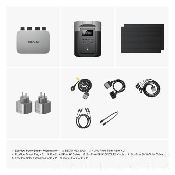 Комплект EcoFlow PowerStream - мікроінвертор 800W + зарядна станція Delta Max 2000 та сонячні панелі 2х400 - Комплекты резервного питания для квартиры и дома на рынке Барабашова