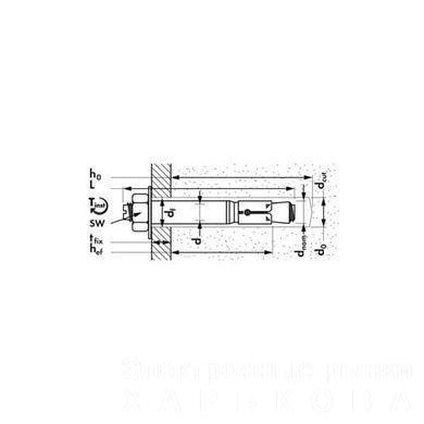 Різьба d M10; Діаметр анкера та бура d(nom)=d(0) 15 мм.; Довжина L 115 мм.; Товщина матеріалу, що закріплюється t(fix) 15 мм.; Мін. глибина установки h(ef) 70 мм.; Стисла зона бетону C20/25, вирив N 14.3 кН; Розтягнута зона бетону С20/25, вирив N 7.6 кН; Бетон С20/25, HL-B (SZ-B) зріз V 20.7 кН; Згинальний момент M 34.3 Нм; Стисла зона бетону відстань між анкерами s 213 мм.; Стисла зона бетону відстань від краю c 90 мм.; Розтягнута зона відстань між анкерами s 106 мм.; Розтягнута зона відстань від краю c 355 мм.; Мін. міжосьова відстань при крайовому відстані s(min)/c 70/120 мм.; Мін. крайове відстань при міжосьовій відстані c(min)/s 70/175 мм.; Мін. товщина базового матеріалу h(min) 140 мм.; Розмір ключа HL-B (SZ-B) SW 17; Момент затяжки T(inst) 50 Нм