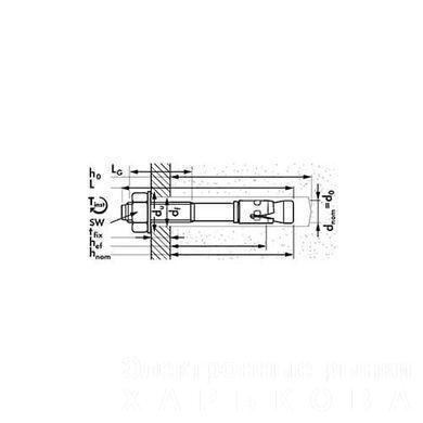 Діаметр анкера та бура d(nom)=d(0) 10 мм.; Довжина L 110 мм.; Товщина матеріалу, що закріплюється t(fix) 30 мм.; Бетон C20 / 25, вирив 7.6 кН; Бетон С20 / 25, зріз 10.1 кН; Згинальний момент 31.9 Нм; Мін. міжосьова відстань при крайовому відстані smin/c 50/50 мм.; Мін. крайова відстань при міжосьовій відстані cmin/s 50/50 мм.; Мін. товщина базового матеріалу h = 120 мм.; Момент затяжки T = 30 Нм