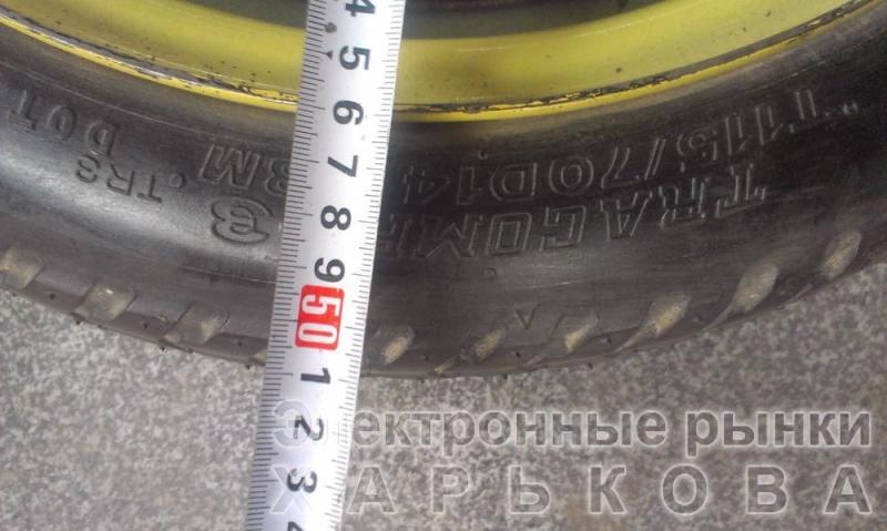 Продам докатку R14 4x100 dia 54.1 с шиной 115/70/14 Toyota Corolla (Тойота Королла), Toyota Yaris (Тойота Ярис), Mazda (Мазда) 323. Suzuki Swift с 2004 по 2010 год.Hyundai ( Хюндай) Getz (Гетц) i10 ,i20. в диаметре 51 см. Докатка в хорошем состоянии, отправлю по Украине.
