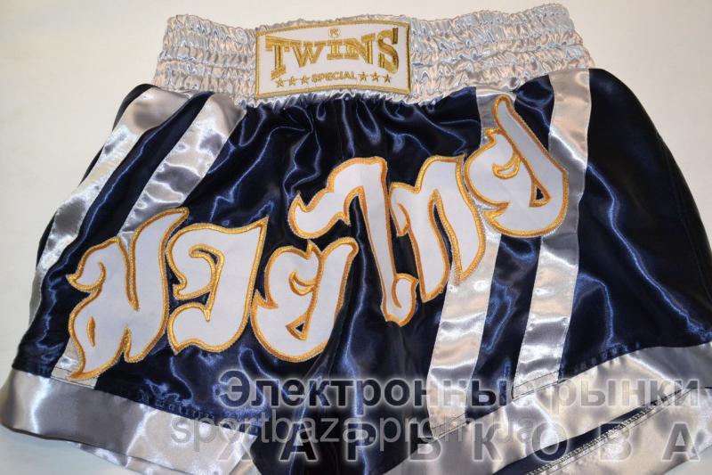 Шорты для занятий тайским боксом "ЭЛИТ" р-р XXXL,атлас (серо-синие) - Одежда для боевых искусств на рынке Барабашова