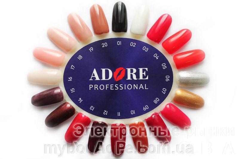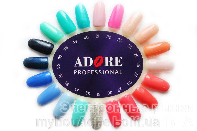 Гель-лак Adore Professional представлен палитрой плотных, насыщенных цветов. В основной палитре гель-лаков Адоре 77 оттенков, среди которых каждый мастер найдет для себя, как и классические цвета (черный, белый, красный, ярко-розовый), так и всегда актуальные модные оттенки (бледно-зеленые, нежно-розовые, голубые и яркие неоновые цвета для лета). Гель-лаки ADORE имеют среднюю консистенцию, не растекается при нанесении, обеспечивают стойкий гель-лаковый маникюр на 3 недели, без сколов, трещин и царапин.