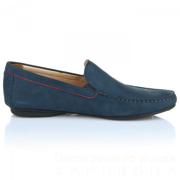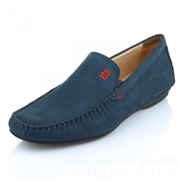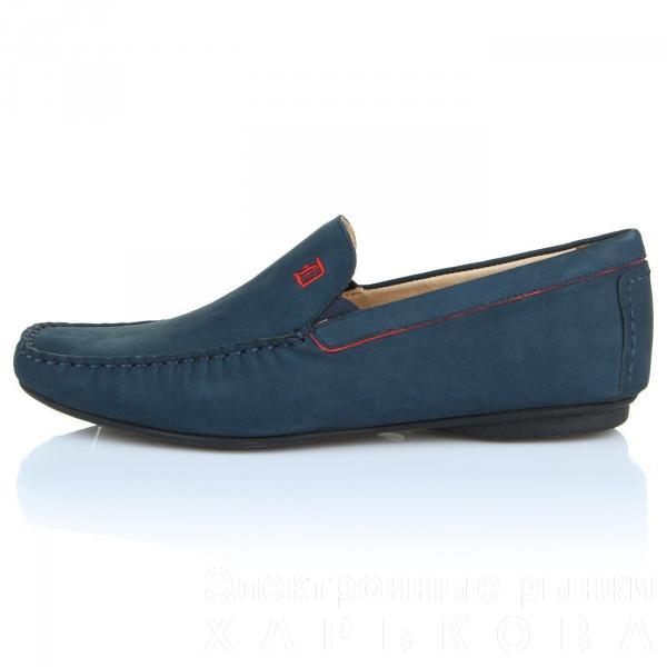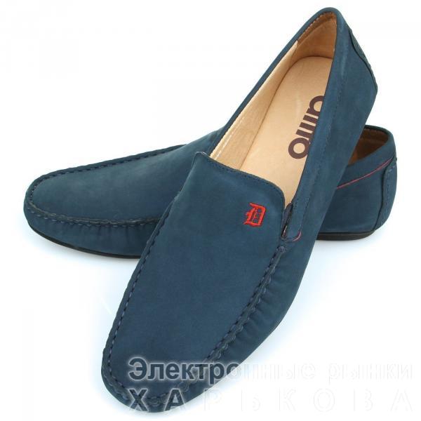 Мокасины ditto из натурального нубука синего цвета. Модель декорирована красной вышитой монограммой, а также красной строчкой по периметру.